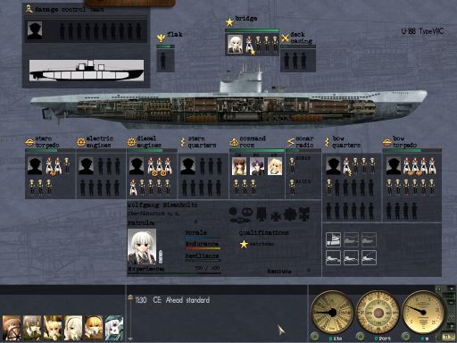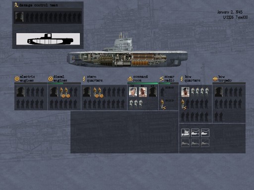 ・艦橋視点がかなり低く、周囲が見えません。また、シュノーケルの伸張がかなり遅いです(共にS3Dで修正可能)。外部視点も艦の中心からずれています。艦内モデルはII型のものを使用しています。